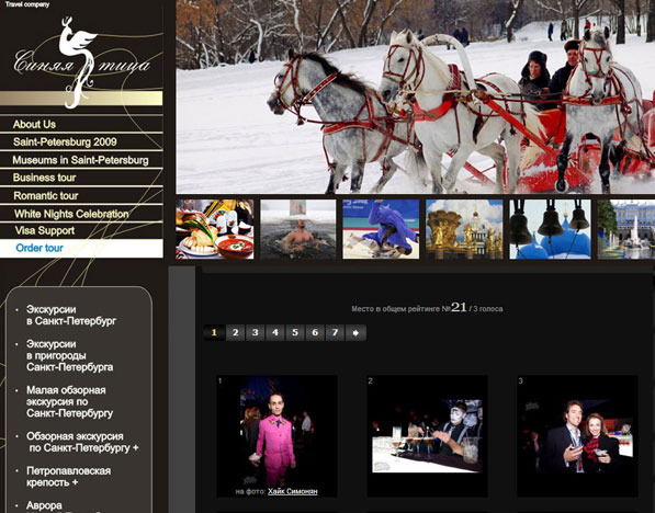 Разработка рекламной компании и фирменного стиля по направлению "Прием в Петербурге" для туристической выставки МИТТ 2010. Заказчик - турфирма "Синяя Птица Плюс": cайт, презентация, полиграфия (визитки,буклеты). Фирменный цвет для всей линейки - черный, красный, золото.